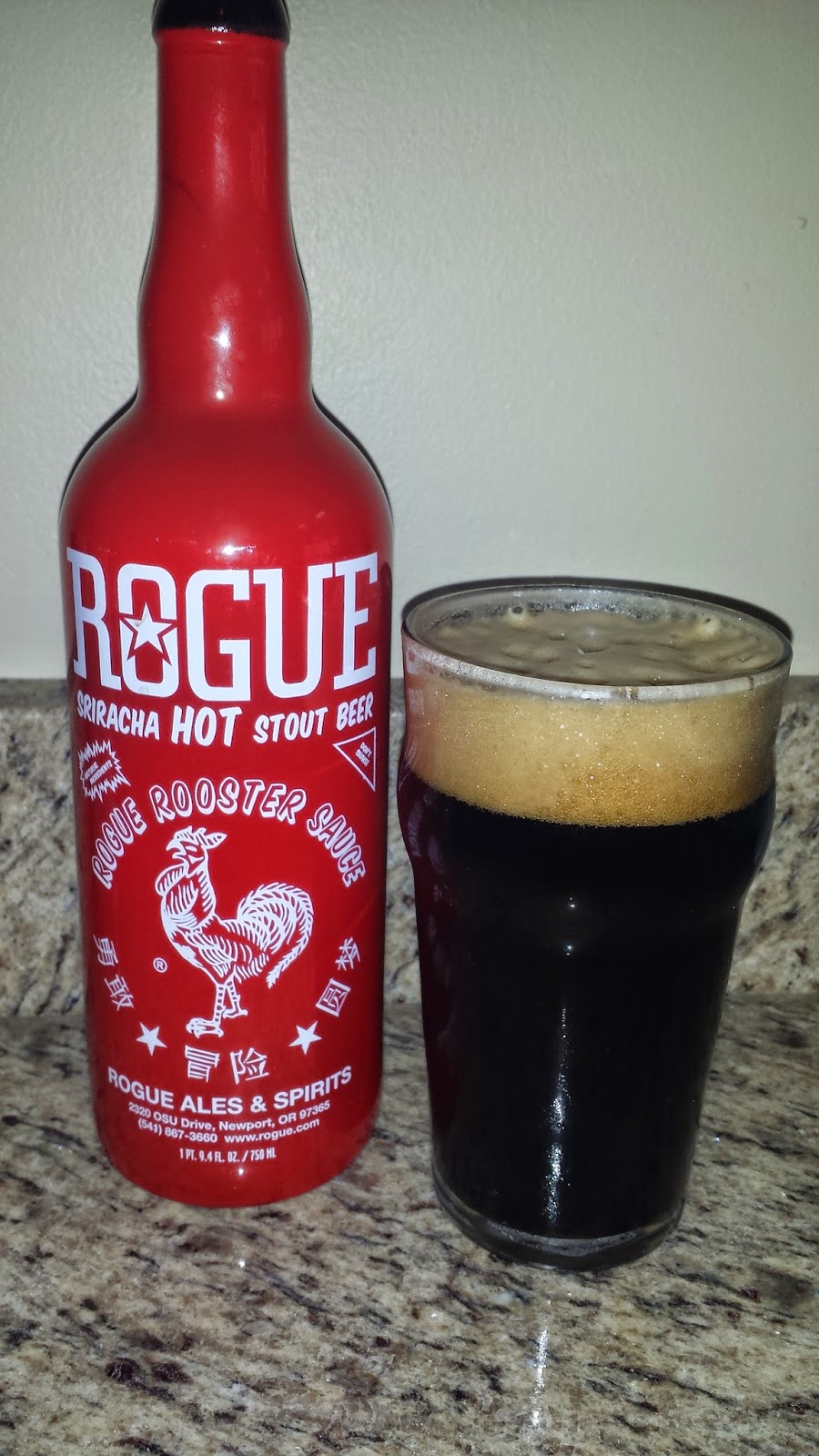 Our first installment is with Rogue Sriracha Stout. Yes … SRIRACHA. That delicious, yet potently spicy sauce you see in Asian restaurants. Rogue partnered with the glorious “rooster sauce” to produce this spicy stout. First sip … delicious. It’s a smooth and rich stout, but it has this finishing kick of spiciness that’s surprisingly good. Sip three … so good, I really enjoy this beer, but that’s really quite spicy. Sip nine … must have water. Don’t get me wrong – I dig spicy food. I get the Three Mile Island wings; I add cayenne pepper to my chili; I put that rooster sauce all over burgers and Asian dishes. But this stout, for some reason, kicked my tail. Maybe it’s the cumulative effect of heat that grew over the full pint. But it certainly had the back of my throat burning by the time I saw the bottom of the glass.